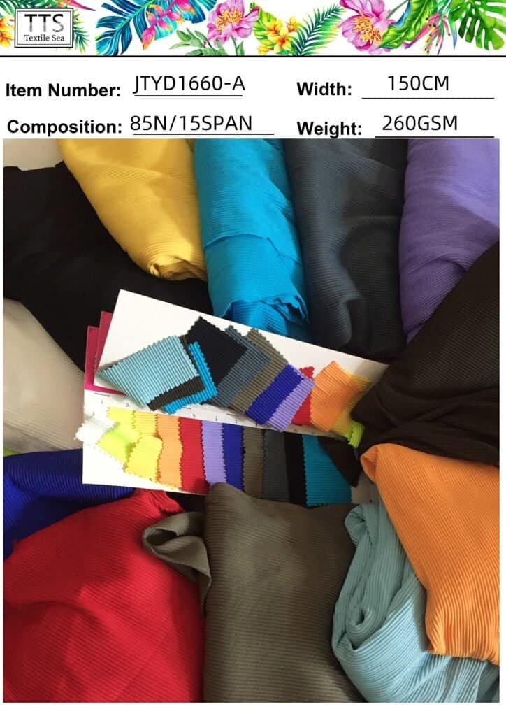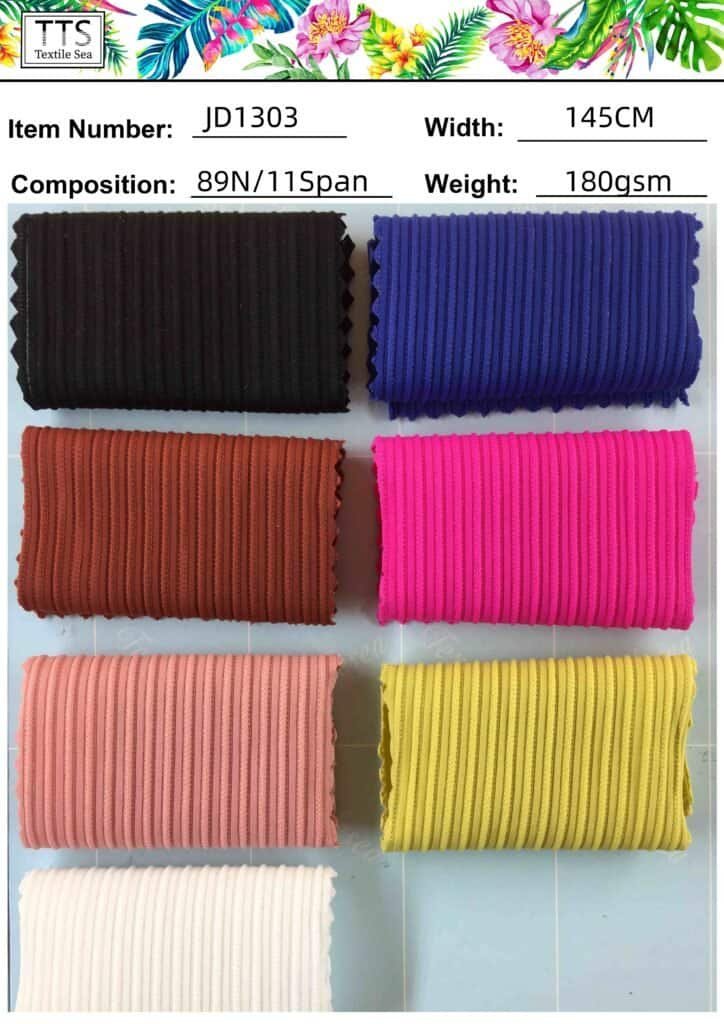 Ribbed fabric is particularly popular in swimwear design due to its stretch, recovery, and stylish texture. When choosing ribbed fabric for swimwear, consider:
