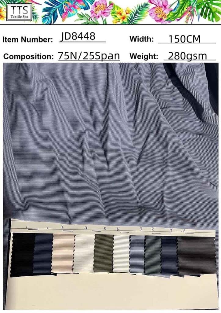 The Fourth Item JTA966# 82%Nylon/18Spandex with 340gsm thickness weight width 110cm; this ribbed designs very thicker and heavier more suit for bikini, pants, Clothes,